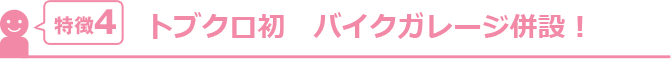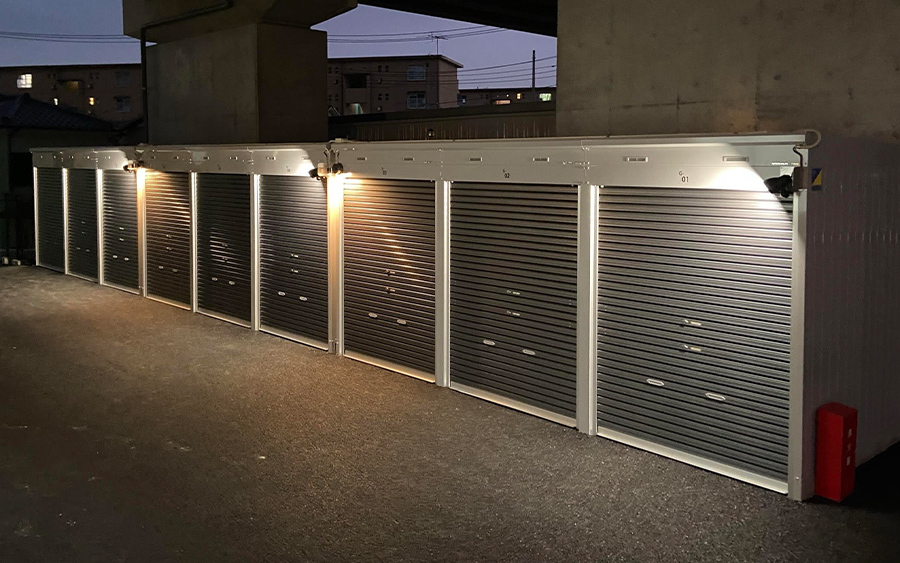 トブクロ初のバイクガレージタイプを設置。バイクから資材など大きな物まで収納が可能です。